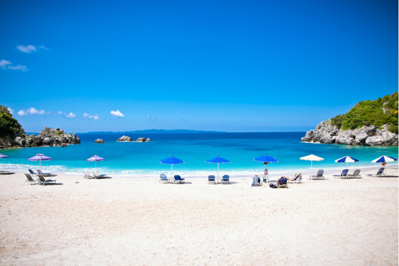 Eine grüne und wild bewachsene Insel, einer der schönsten Strände Griechenlands.