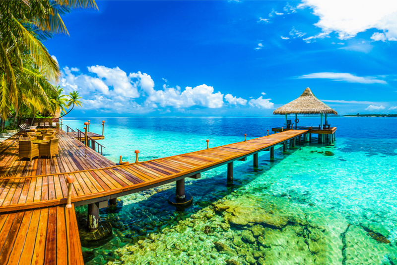 Die Malediven sind perfekt für Wassersportler, Tauchfans und Sonnenanbeter. Das Klima ist fast das ganze Jahr über konstant tropisch heiß. Auch in der Nacht fallen die Temperaturen selten unter 25 Grad. An den unendlich langen Stränden ist der weiße Sand so fein wie Puderzucker. Von Juli bis Februar kann man an den Stränden der Inseln Mudhdoo, Vaadhoo und Rangali ein faszinierendes Naturschauspiel, die „Sea of Stars“ beobachten. Fluoreszierendes Plankton verwandelt tagsüber türkisfarbenes Meer nachts in einen glitzernden Sternenteppich. Zur Abwechslung von den endlos langen, einsamen Stränden, lockt eine Dschungelsafari. Dort warten neben der üppigen Vegetation, atemberaubende Wasserfälle und Lagunen mit glasklarem Wasser.