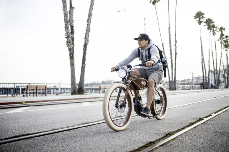 Ein besonders schönes Stück unter den E-Bikes ist das Ruffian. Im Design orientiert es sich weniger an herkömmlichen Drahteseln, als vielmehr an den großen Motorrädern aus den 30er-Jahren wie der Harley Davidson. Überdimensionierte Weißwandreifen, ein breiter, bequemer Ledersattel und große, runde Chrom-Scheinwerfer sowie ein falscher Benzintank in Torpedoform, der die Batterie verbirgt, gehören zu den schicken Markenzeichen des Ruffian. Hergestellt werden die Ruffian Räder von Ruff Cycles in Regensburg.